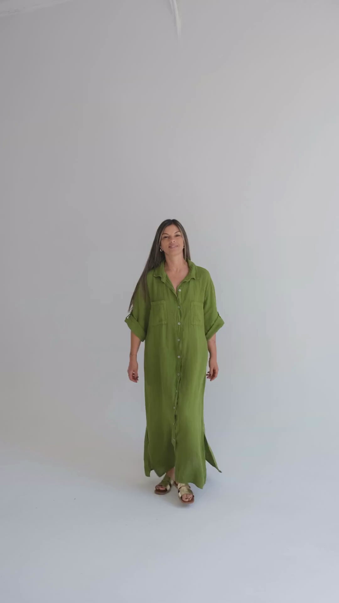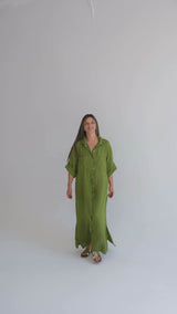 Camisero largo y fluido, confeccionado en puro lino italiano.