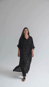 Camisero largo y fluido, confeccionado en puro lino italiano.