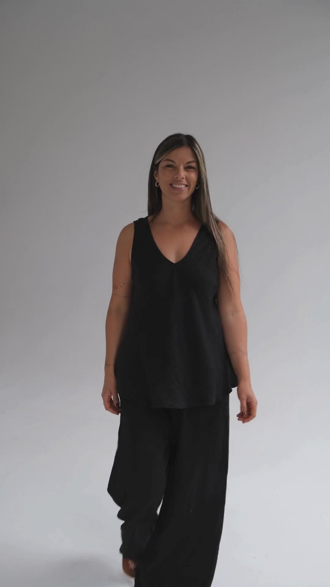 Realizada en 100% lino italiano, con escote en V tanto en el frente como en la espalda.