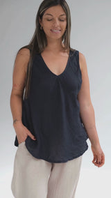 Realizada en 100% lino italiano, con escote en V tanto en el frente como en la espalda.
