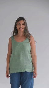 Musculosa confeccionada en lino italiano de alta calidad, con delicados detalles de rayas en los hombros y la espalda.