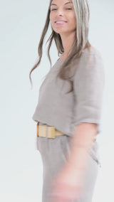 Pantalón de Lino recto, tiro medio con cinturón beige incluido.