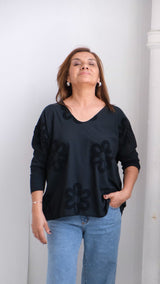 Remera Flor Negro