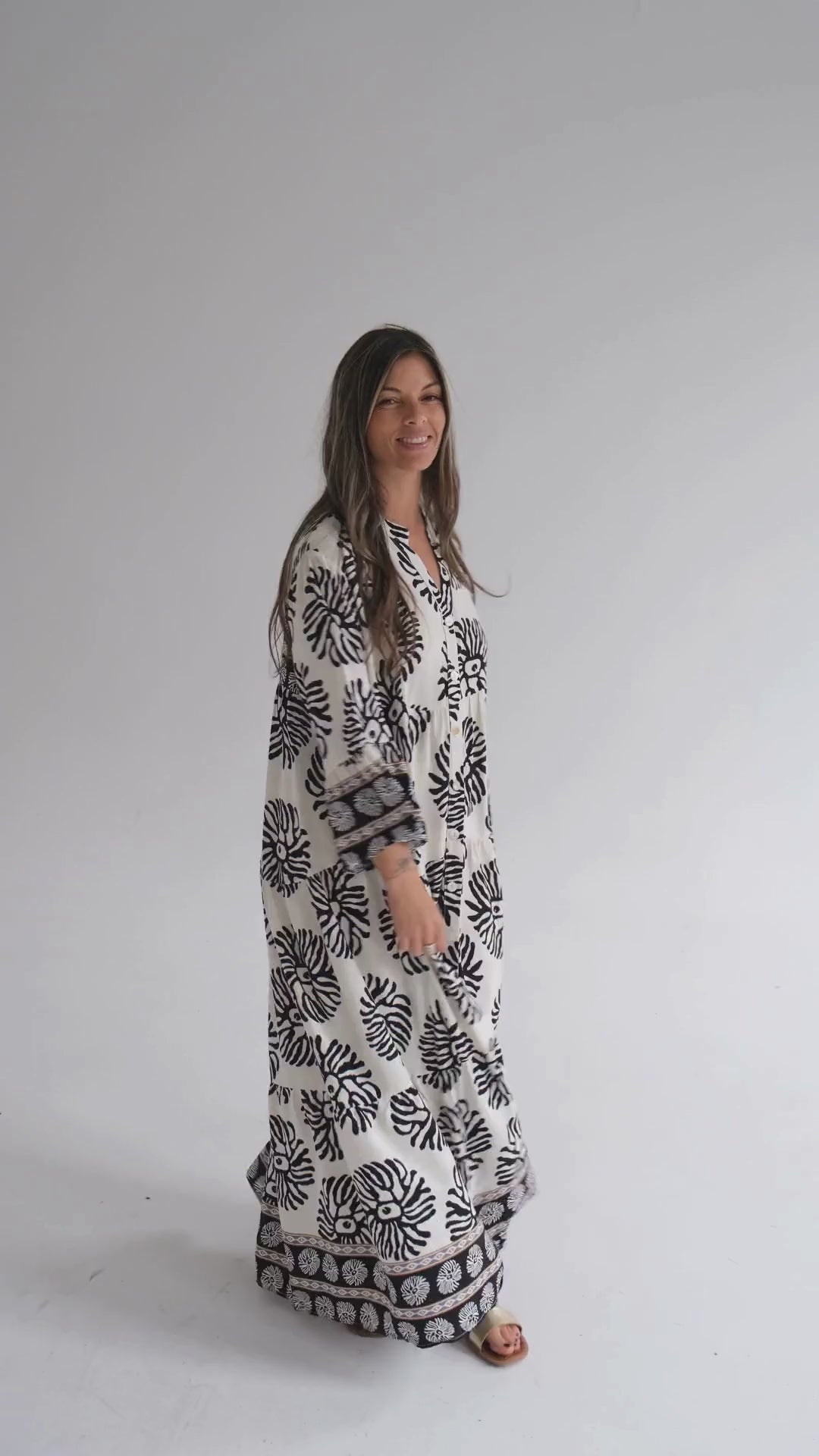 Liviano y versátil, este vestido combina una caída suave con detalles que enamoran. Confeccionado en viscosa fluida, tiene botones al frente y mangas acampanadas que aportan un toque femenino y elegante. Perfecto para cualquier momento del día. 🌸
